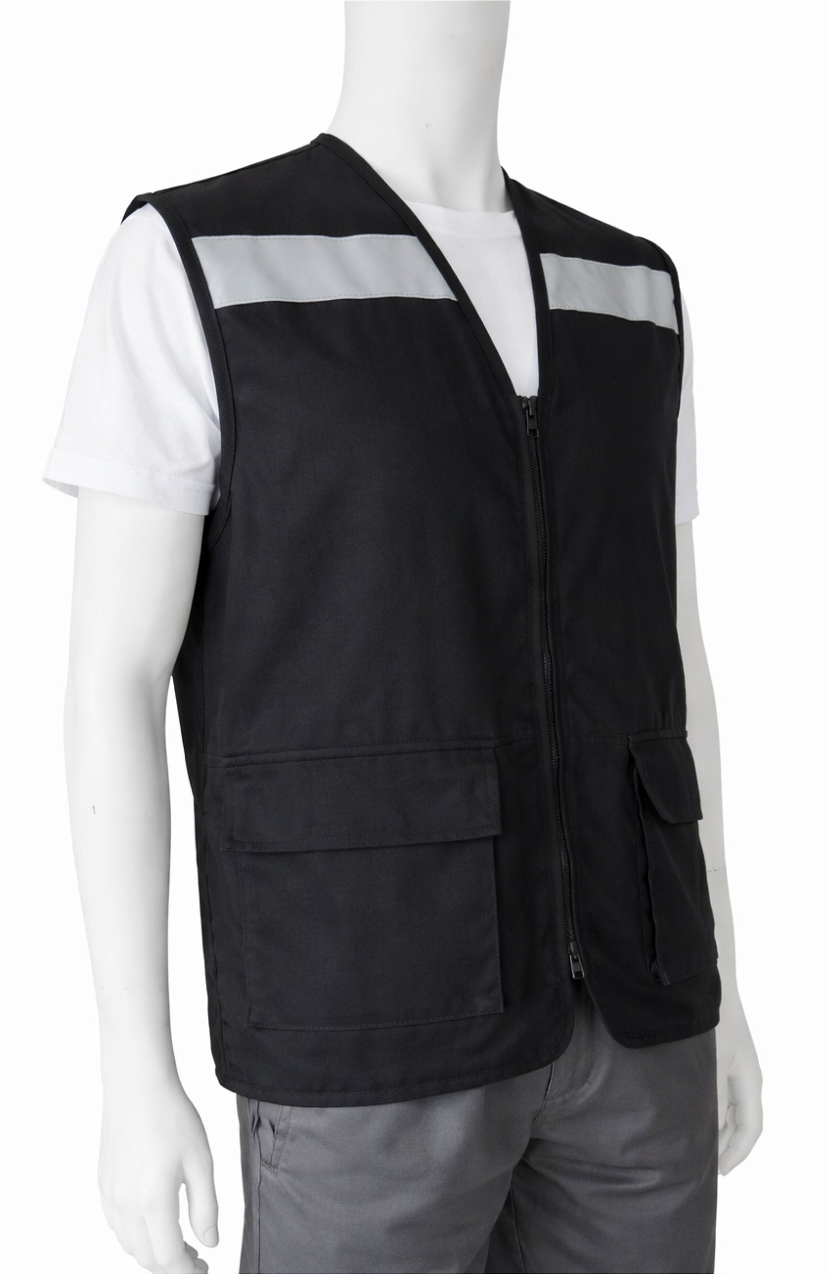 Colete confeccionado em tecido brim de alta resistência, ideal para atividades operacionais. O modelo possui duas faixas refletivas de 50 mm nas costas e faixas refletivas de 50 mm posicionadas na altura dos ombros, garantindo excelente visibilidade em ambientes de baixa iluminação. Conta com dois bolsos inferiores com fechamento em lapelas e velcro, oferecendo praticidade e segurança para guardar acessórios. Fechamento frontal em zíper reforçado. Indicado para segurança, equipes de fiscalização, apoio operacional e diversos outros usos profissionais.